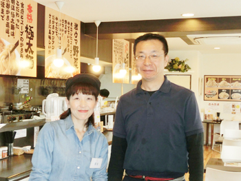 | 「重光様ご夫婦のお写真」 ツーショットの重光様ご夫婦です。とても仲が良いです。最初の打ち合わせから完成まですごい「エネルギッシュな人」でした。とても決断が早く適格な要望や意見設計の打ち合わせが短期間で終わりました。重光様はいろいろなラーメン店を食べ歩き、九州は細麺のトンコツラーメンが多い中で、あえて「太麺ラーメン店」を開店することに決めました。家族並びにスタッフ皆さんのご協力もあり、無事オープンとなりました。 |