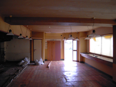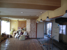 貸店舗の為いろいろな業種の店が入れ替わり、いたるところが傷んでいました。壁及び天井はクロスが剥げ落ちて汚れていました。