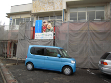 「店舗入口」 正確な図面が無い為、現地測量してからの提案、特に電気設備及び給排水設備、空調設備が大事でした。エアコンは壁掛けを取り外して天井型を店舗の中央に取り付け店全体が適温状態で保てるようにしました。 |