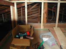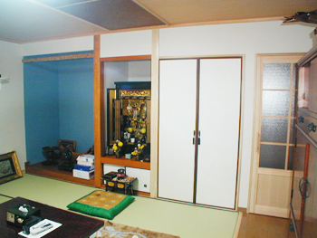 2階の和室は新規床組としてフロアー張り壁天井は全面クロス貼り、収納は小屋裏を利用して収納庫としました。