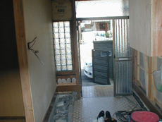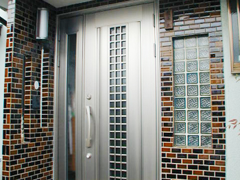 玄関の隣にあるトイレ、洗面所、浴室は8畳の和室の部屋を解体して、それぞれのスペースを確保し、間取りを変更。玄関のドアを断熱ドアに取り替え、玄関収納はコート掛け部分を造り、床のタイル張替えポーチと同種類にしました。