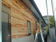 傷んだ瓦は新規瓦葺き替え、北側の外壁はひびを補修後に塗装し、洗濯干場は客間の南側に4帖の広さでウッドデッキで造りました。