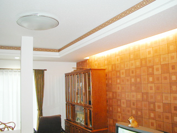 日頃、利用していなかった二間続きの部屋は、広くて明るいリビングルームとなり、床はバリアフリーのフロアー張り、壁、天井クロス貼りでモダンな仕上がりに。さらに照明は、間接照明とダウンライトを組み込み、インテリアとして楽しむこともできます。