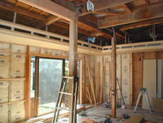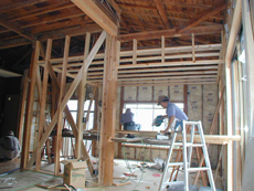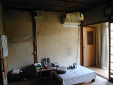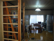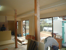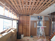 6畳と8畳の二間続きの部屋の天井、壁、床を解体して柱と梁(躯体)のみにしました。