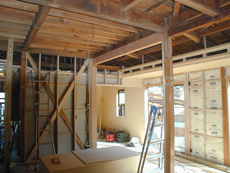 耐震の計算をして必要箇所に筋違いを設置した耐力壁を設けました。