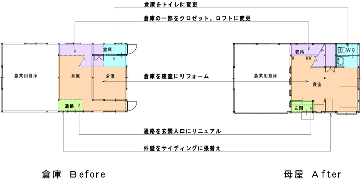 母屋と離れの倉庫のリフォームの依頼の相談です。