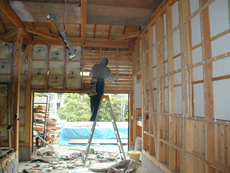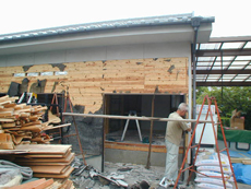 また、ガス機器類は取り外しオール電化、さらに太陽光発電としました。離れの倉庫は入口の引き戸をドアに変更し、外部はサイディング張りにしました。